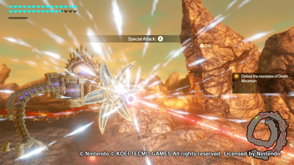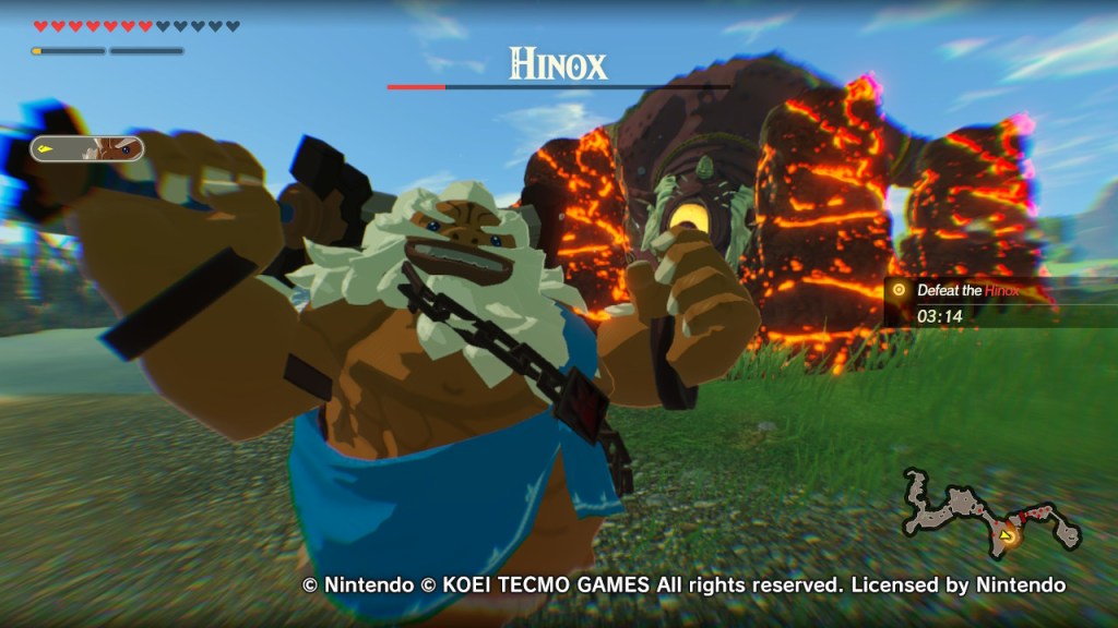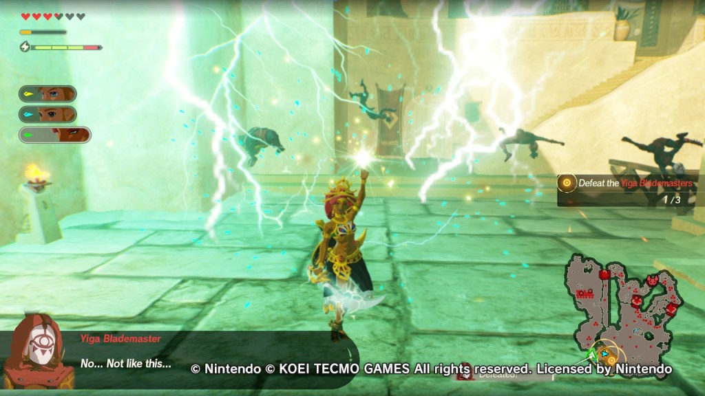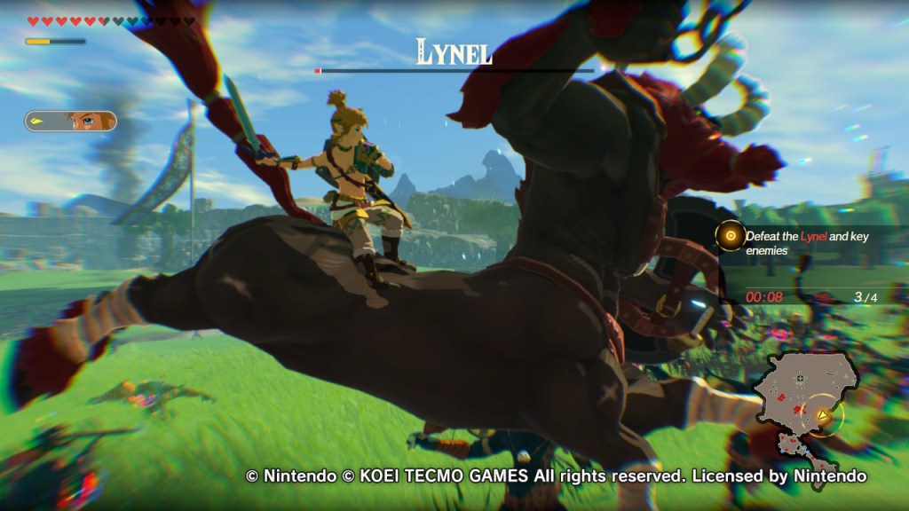 The gameplay is classic Warriors-style, you’ll be slashing through hundreds of enemies with ease. This is not to say that the game is a breeze however. While Bokoblins and Lizalfos will be dispatched with ease, many enemies from Moblins to Stone Talus’ will require more thought than just mindless button mashing. You’ll want to dodge their attacks (a perfect dodge allowing you to get multiple quick hits in uninterrupted in a flurry rush) and attack them with their weak point exposed. Depleting this meter will allow you to unleash a Weak-Point Smash for big damage. Even in a game based around flashy attacks, a Lynel will still cause you to pause if you don’t want to be annihilated.