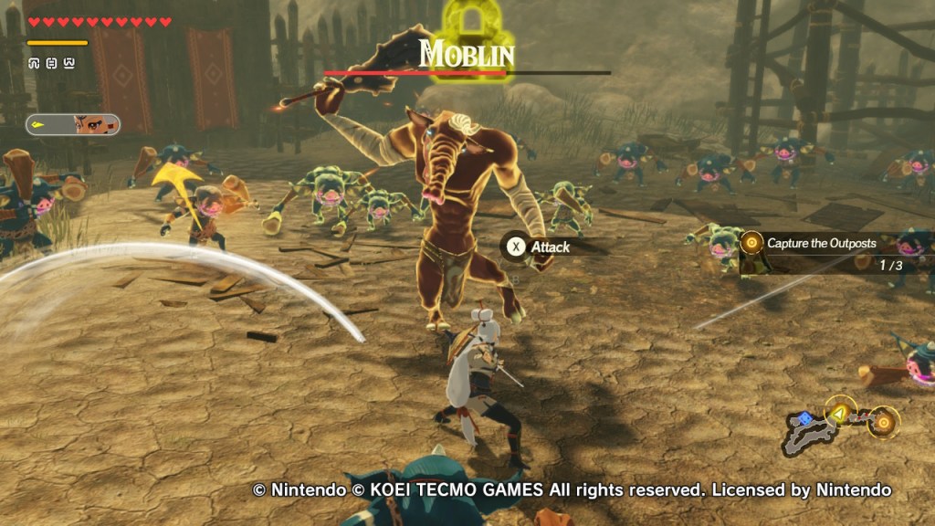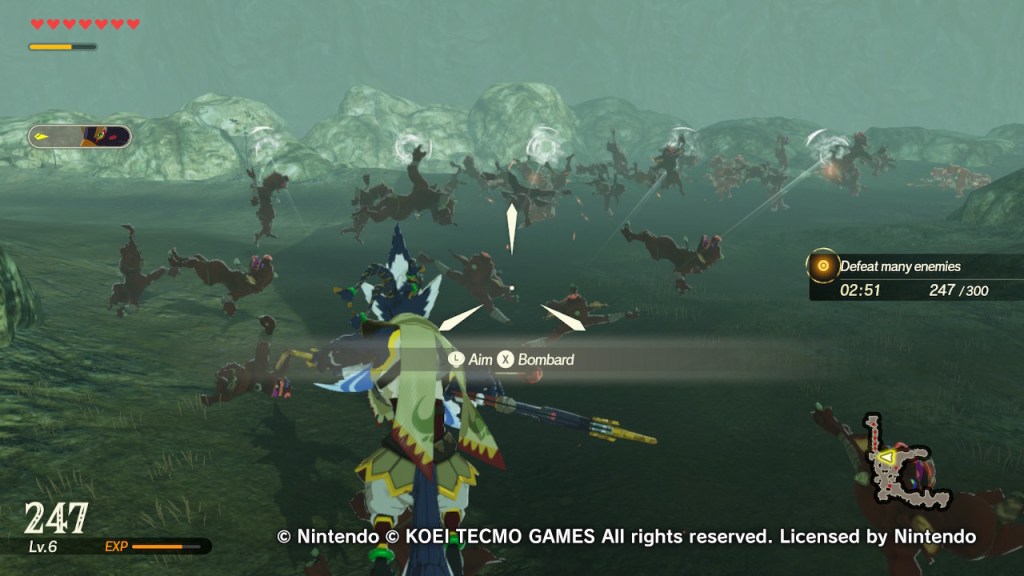 Sometimes you’ll pick multiple characters going into a level and you can swap between them on the fly. I thought it’d be annoying having to pause and tell the ones I wasn’t playing as where to go all the time but honestly it felt like second nature. From capturing outposts to taking down enemies ranging from Guardians to the Yiga Clan and Master Kohga, I had a blast the whole way through. In between story missions, there’ll be sidequests on the map. These fall into two different categories; battle ones where you’ll have to defeat specific foes or a certain amount etc. and are good for levelling up your characters (and possibly unlocking a couple…) and then simple missions that involve trading materials in exchange for bonus combos and hearts and the like. There’s a lot of content here if you feel like it (even Korok seeds!).
